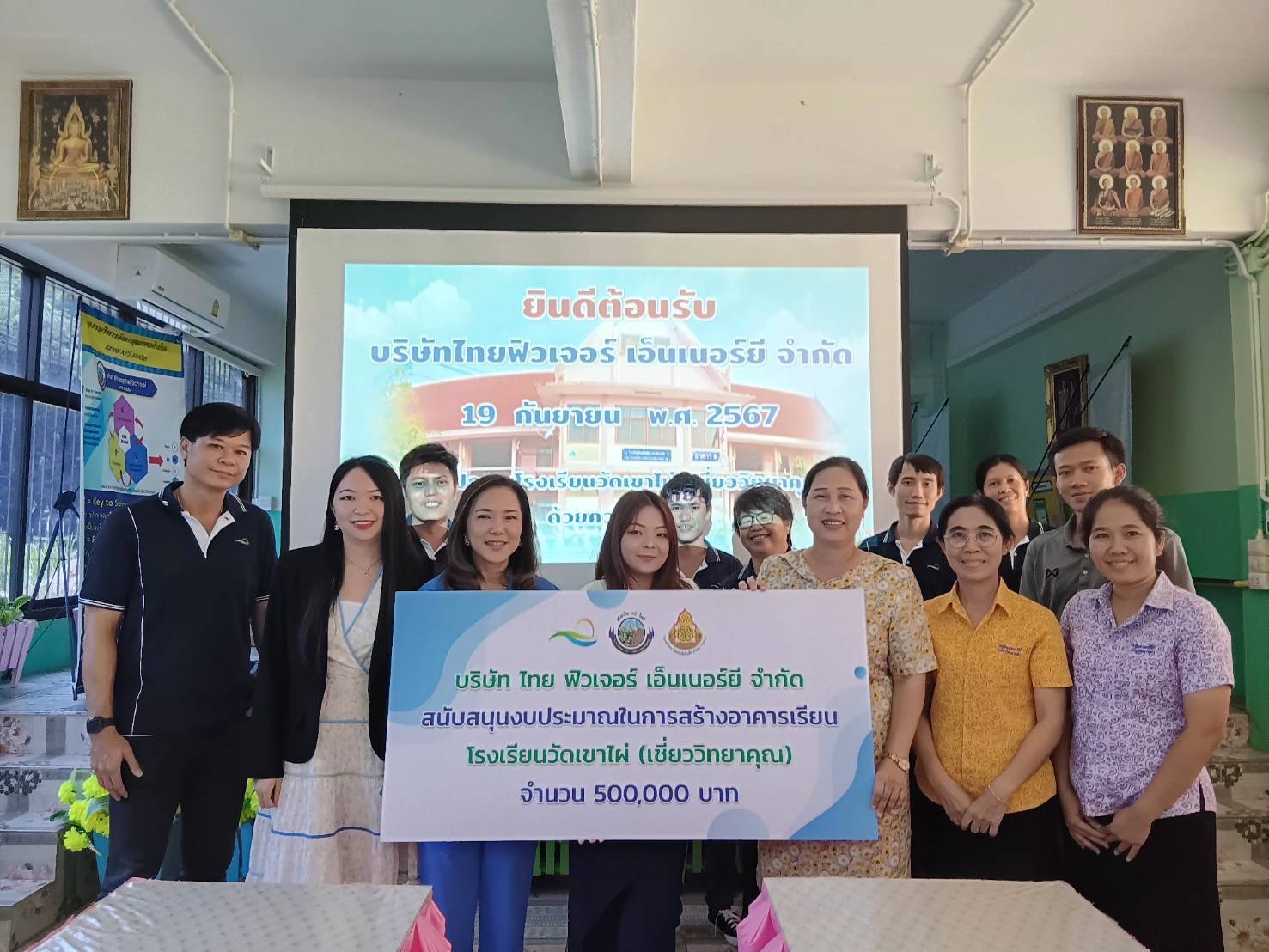 วันที่ 19 กันยายน 2567 บริษัท ไทย ฟิวเจอร์ เอ็นเนอร์ยี จำกัด โดยคุณอนุสรา ยังตรง ประธานกรรมการบริหาร คุณปรมาภรณ์ ยังตรง และ คุณบุษยากร ยังตรง กรรมการบริหาร ได้มอบเงินสนับสนุนจำนวน 500,000.00 บาท ให้กับ ”โรงเรียนวัดเขาไผ่ (เชี่ยววิทยาคุณ)” เพื่อใช้ในการก่อสร้างต่อเติมอาคารเรียน 2 ชั้นหลังใหม่ เป็นห้องประชุมเอนกประสงค์, ห้องเรียนคหกรรม และห้องน้ำห้องส้วมสำหรับเด็กนักเรียนและผู้มาติดต่อราชการภายในโรงเรียน เพื่อให้เกิดประโยชน์ต่อการเรียนรู้ เพิ่มพูนทักษะในหลาย ๆ ด้านของเด็ก ๆ ซึ่งเป็นอนาคตของชาติ
